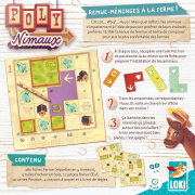 Enfile vite ta tenue de fermier et tente de satisfaire les besoins de chacun ! À chaque tour, récupère une tuile pochoir, positionne-la astucieusement sur ta Ferme et trace au meilleur emplacement possible les empreintes de ton animal.